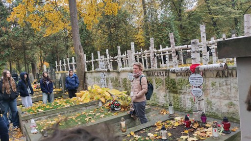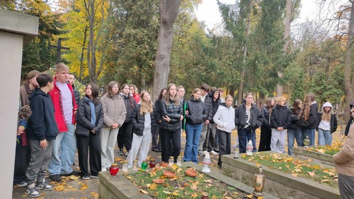 Następnie odwiedziliśmy miejsca związane z działalnością Szarych Szeregów, m.in Aleję Szucha, Mauzoleum Walki i Męczeństwa, Pawiak, a także Cmentarz Wojskowy na Powązkach, gdzie uczniowie oddali hołd bohaterom „Kamieni na szaniec” oraz harcmistrzowi Aleksandrowi Kamińskiemu – autorowi książki.