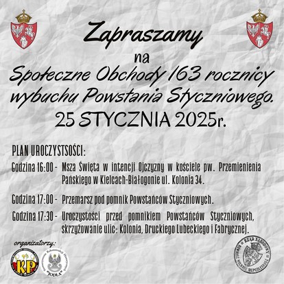 SPOŁECZNE OBCHODY 163 ROCZNICY WYBUCHU POWSTANIA STYCZNIOWEGO