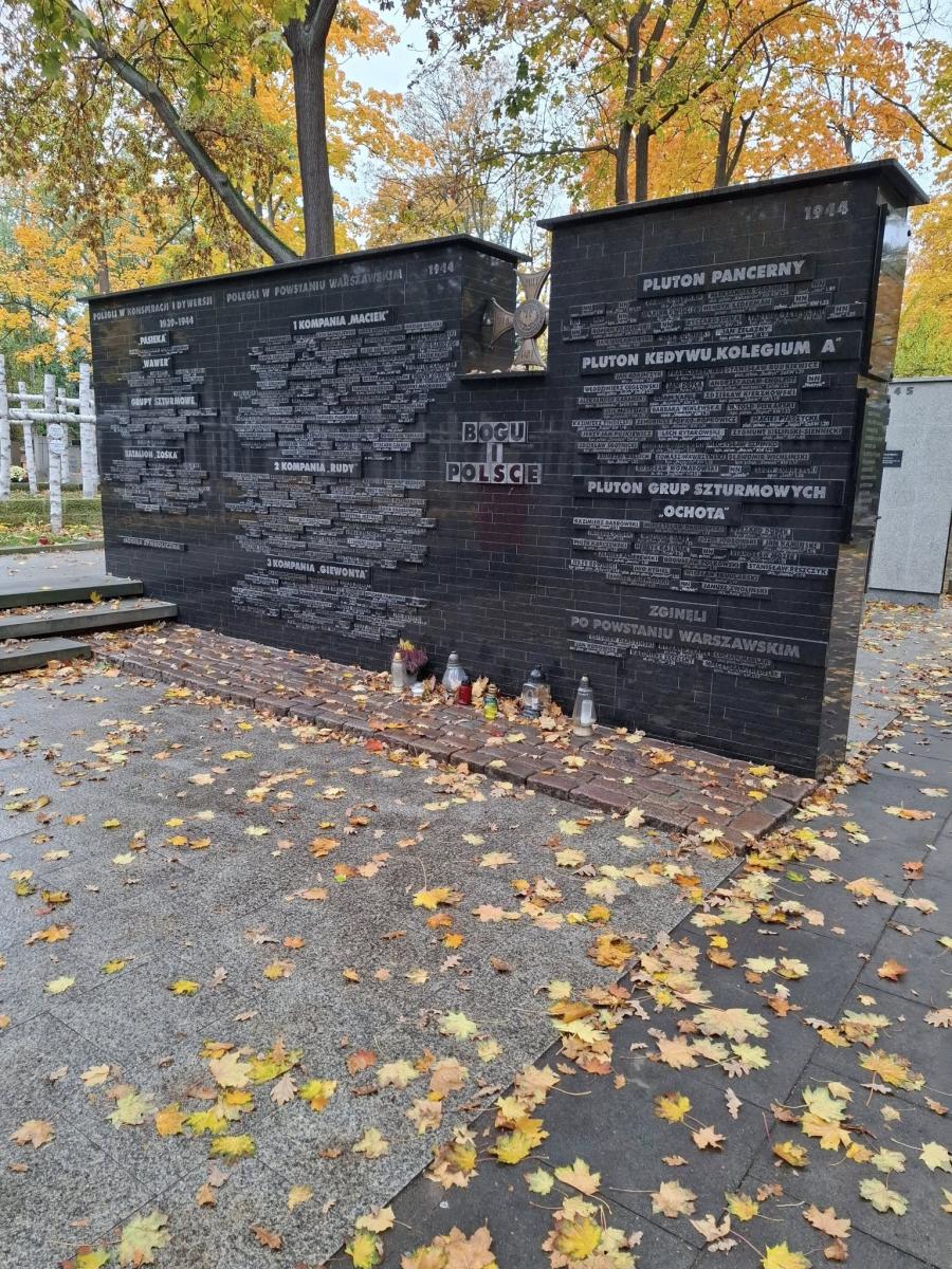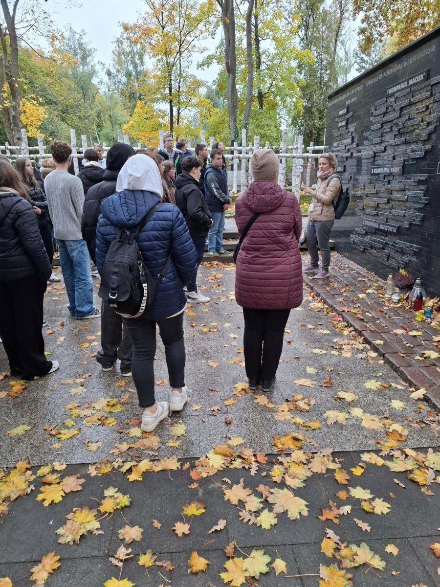 Następnie odwiedziliśmy miejsca związane z działalnością Szarych Szeregów, m.in Aleję Szucha, Mauzoleum Walki i Męczeństwa, Pawiak, a także Cmentarz Wojskowy na Powązkach, gdzie uczniowie oddali hołd bohaterom „Kamieni na szaniec” oraz harcmistrzowi Aleksandrowi Kamińskiemu – autorowi książki.