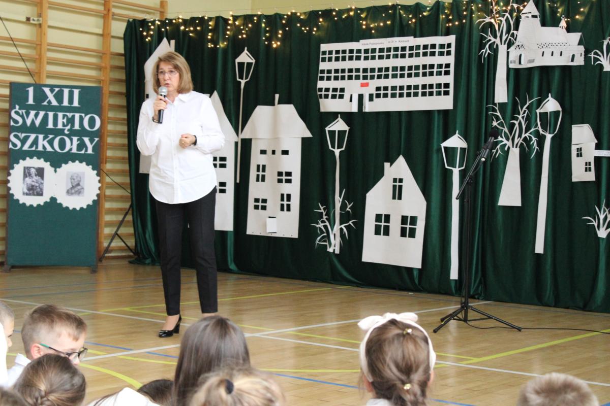 Na zakończenie uroczystości głos zabrała pani dyrektor Małgorzata Pawłowska, dziękując za przygotowanie uroczystości i przypominając, jak ważne jest dobre, życzliwe patrzenie na drugiego człowieka.