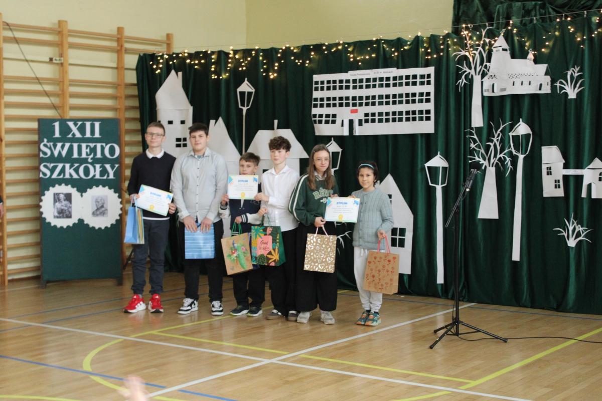 Na scenie pojawił się śpiew, taniec patriotyczny oraz chwile zadumy podczas przypomnienia sylwetki naszej patronki, Natalii Machałowej – kobiety, która uczy nas nie tylko mądrości, ale i wrażliwości na drugiego człowieka. Szczególne miejsce poświęciliśmy również Stanisławowi Staszicowi, który już wkrótce będzie Patronem Roku 2026. Przypomnieliśmy jego niezwykły wkład w rozwój regionu kieleckiego i Białogonu. To dziedzictwo, które wciąż nas inspiruje. Zwieńczeniem apelu był quiz wiedzy z treści przedstawionych podczas akademii. Wzięli w nim przedstawiciele z oddziałów 8,6 oraz 5, wykazując się ogromnym zaangażowaniem, refleksem i prawdziwym duchem zdrowej rywalizacji.