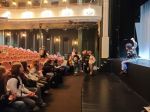 Ponadto dzieci poznały historię remontu teatralnego, a następnie zasiadły na widowni Małej Sceny. Tutaj p. Klaudia opowiedziała o pracy aktora, o przygotowaniach do sztuki, o tym, jak pracować głosem i w jaki sposób o niego dbać. Ciekawe dyskusje przerwał dzwonek. Był to znak, że pora udać się na przedstawienie.